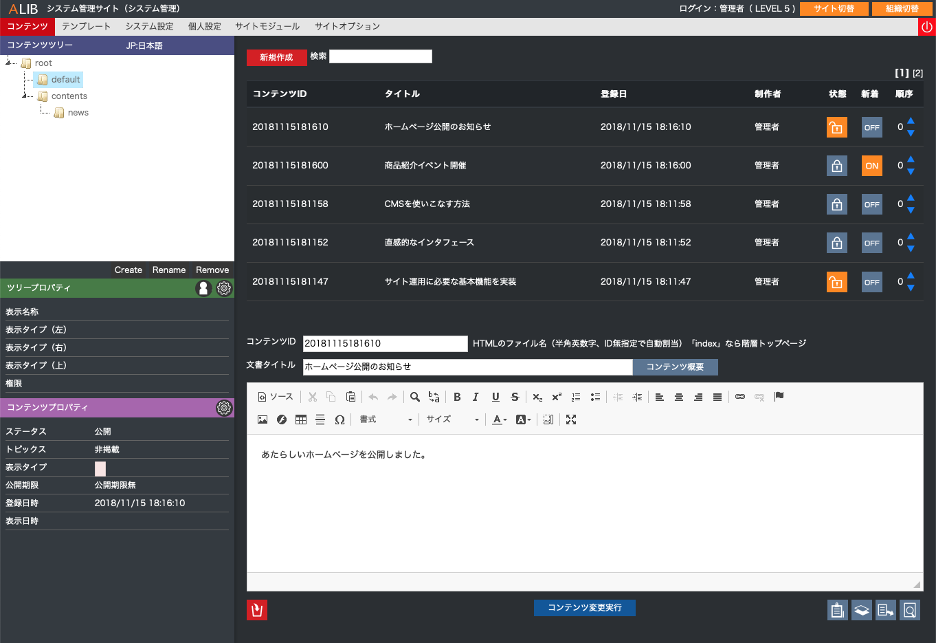 いろいろなCMSがありますが、そのほとんどが過剰な機能を有するものだったり、コンテンツ量が増えるにつれて管理しにくかったりします。また、複数ウェブサイトを管理する企業ではIDパスワード・システムの維持管理に頭を悩ますこともあります。その点、ALIBでは1システムで複数のウェブサイトの同時管理が可能です。